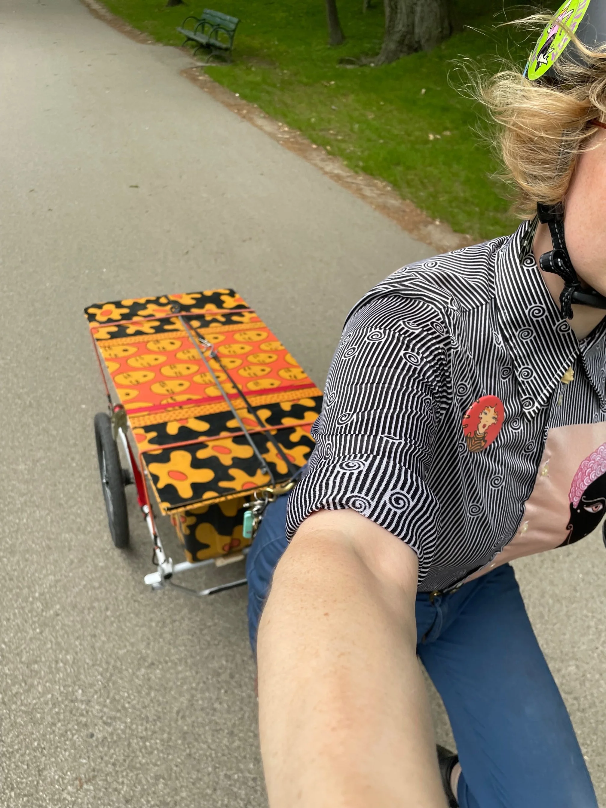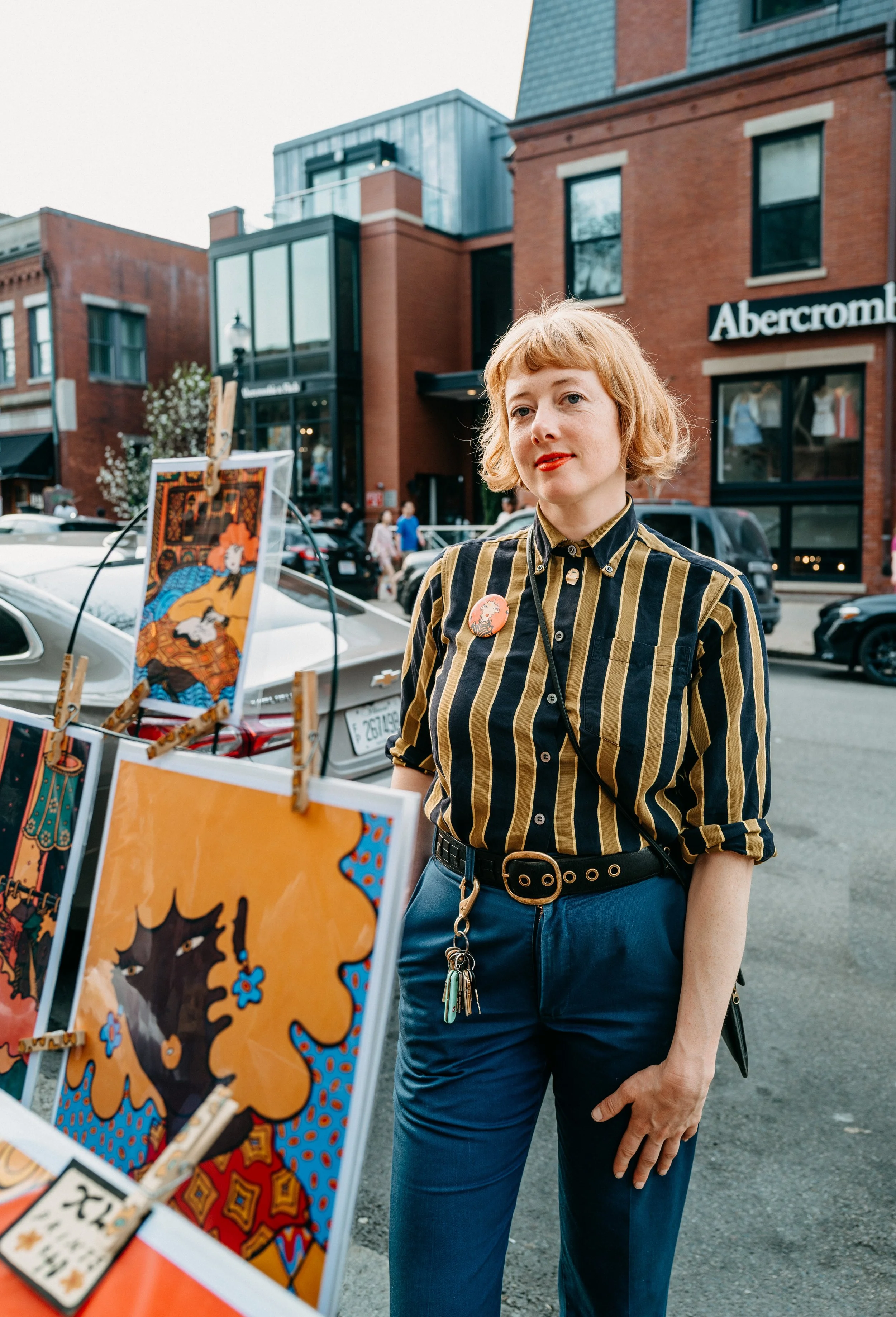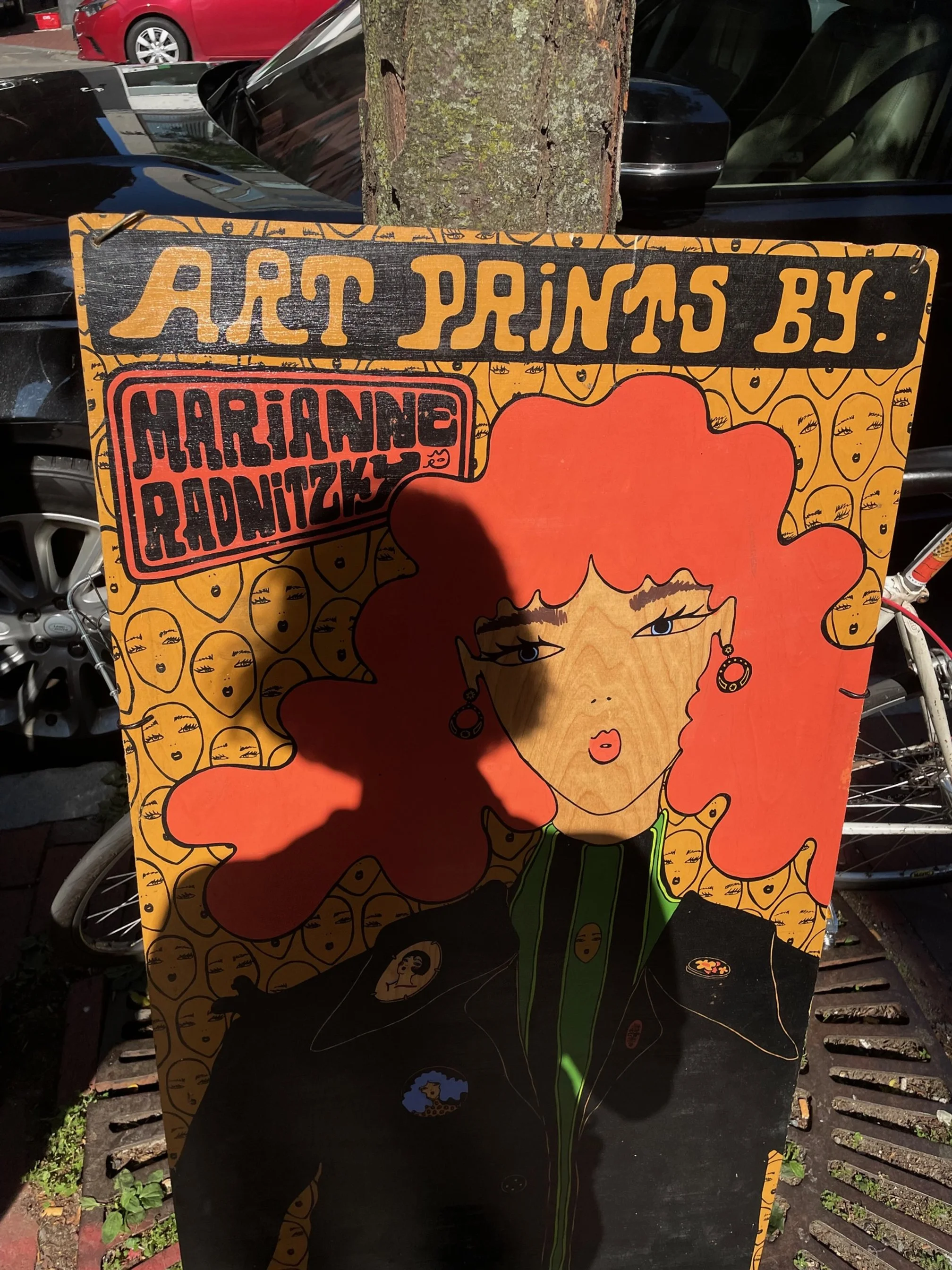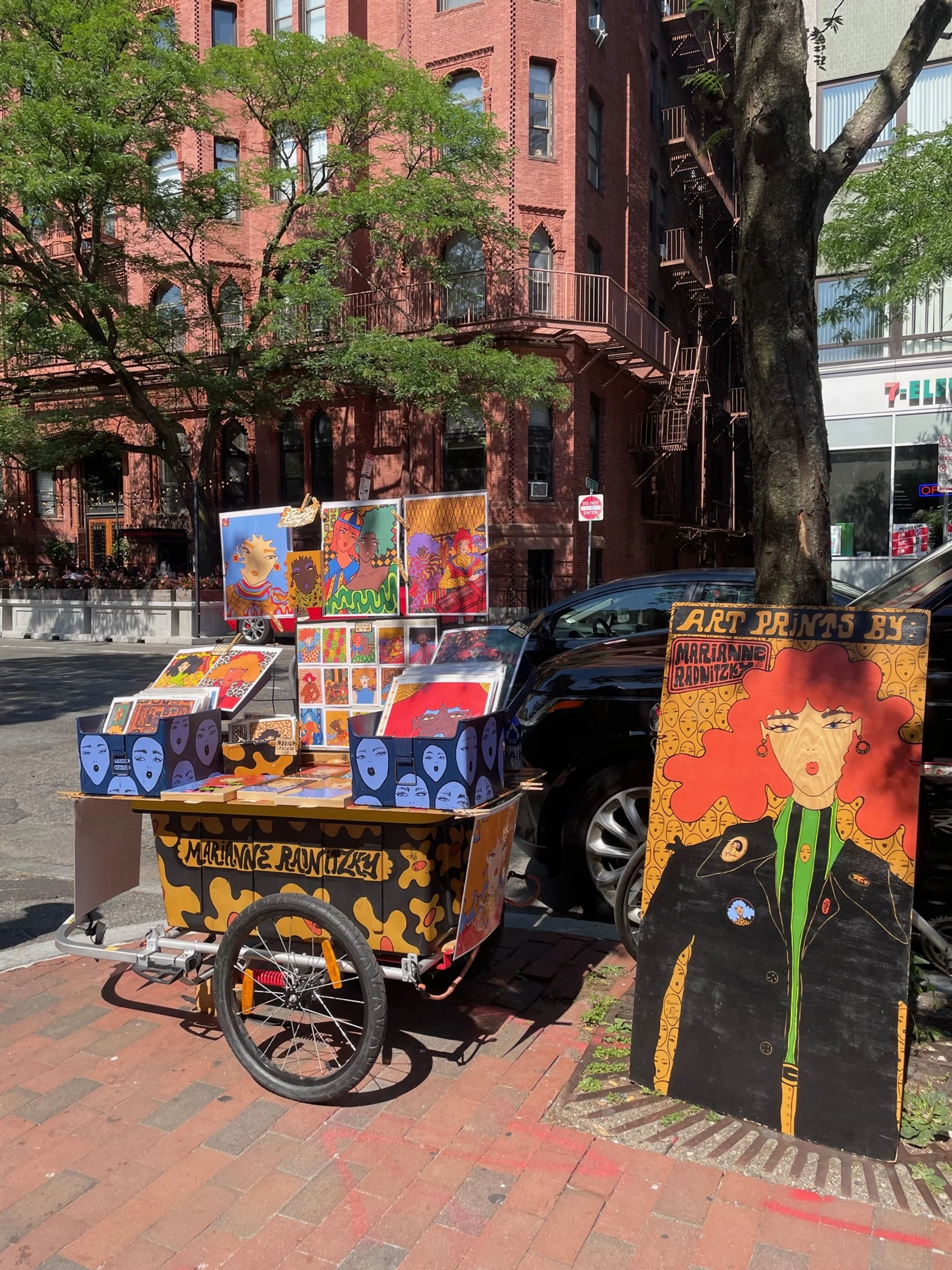 Find me in the streets of Boston on the weekends when it’s nice and I don’t have art markets going on. I ride my art into town with my custom bike trailer and set up for a few hours each weekend!